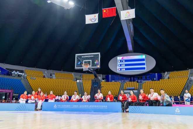 12月8日,全国第十二届残疾人运动会轮椅篮球项目三人制比赛在广州体育馆收官,这是该项目第一次出现在全国残特奥会的赛场上。