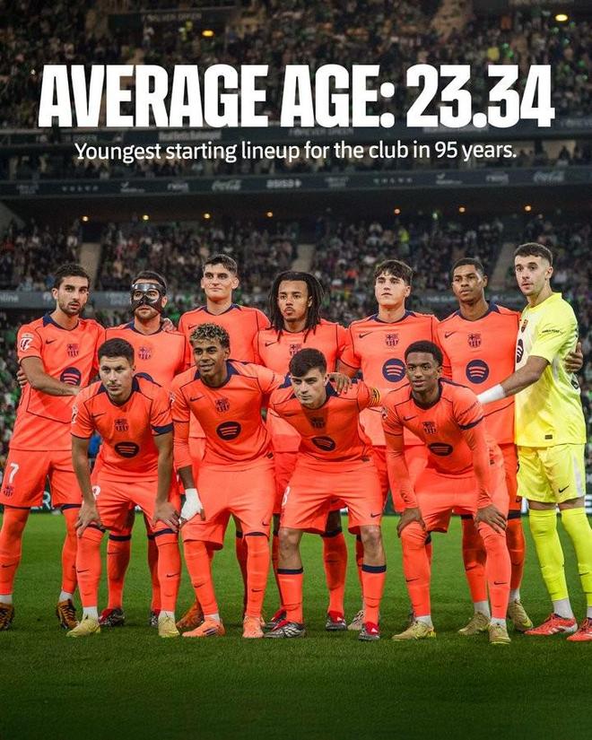 23.34岁,巴萨客战贝蒂斯首发平均年龄创队史95年来最低纪录
