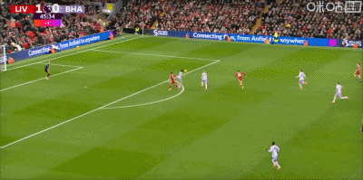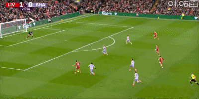 第1分钟,闪电战!埃基蒂克接戈麦斯头球抽射破门,利物浦1-0领先布莱顿!
